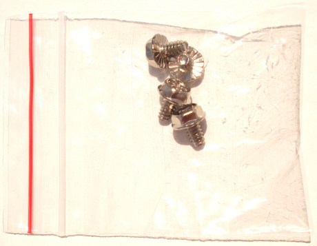 Los tornillos tienen la cabeza dentada para aumentar el rozamiento y enganche con la torre. Vienen en una práctica bolsita de cierre hermético.