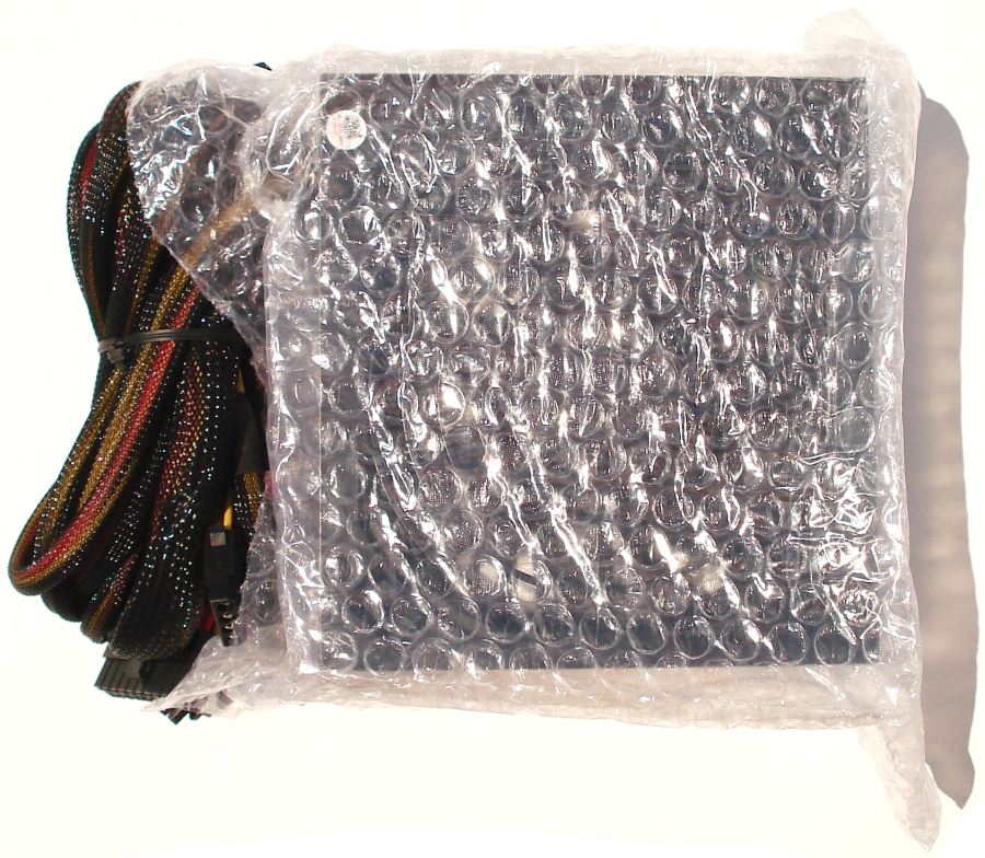 A parte de la caja, tenemos una bolsa de bolitas de aire para proteger aún más, si cabe, la fuente. Hubiera sido un detalle que nos hubieran proporcionado una bolsa de tela o algo similar, pero bueno, el precio está ajustado.