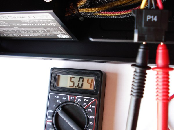 Además, hemos realizado un test con el polímetro o téster para controlar electrónicamente (y no vía software) la tensión real ofrecida.
