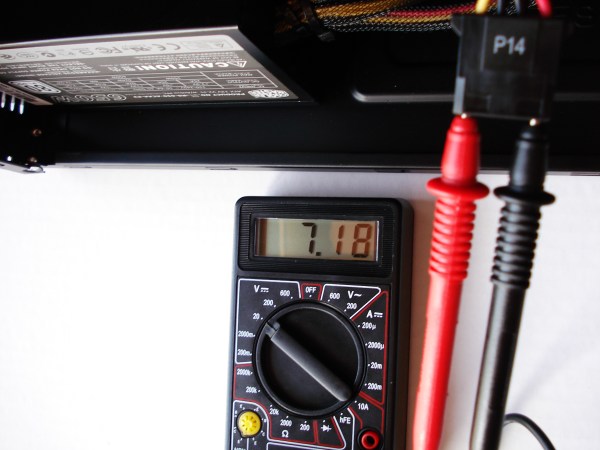 En cambio, vemos como decae la tensión de +12V unas 0’5 décimas a causa de aumentar la carga. No obstante sigue estando siempre por encima de los +12V exactos y bastante cerca. A causa de esta variación, también nos varia el «voltaje extra» que le podemos sacar a la fuente de +7V.