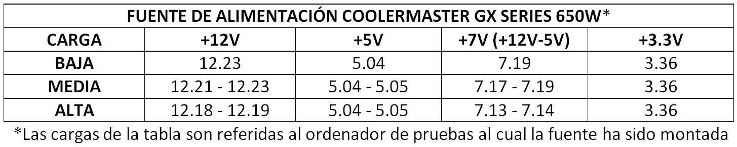 COOLER MASTER GX 650W. Carga media. Tensión de +7V