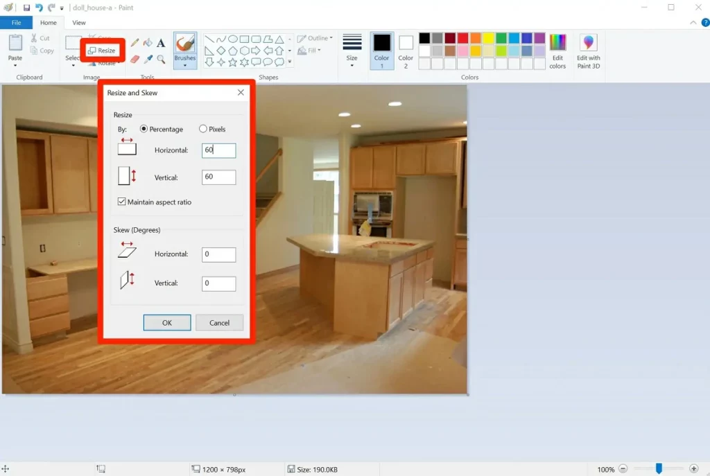 - Puedes elegir si cambiar Porcentaje o Píxeles, así que elige lo que prefieras