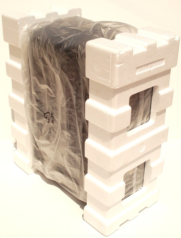 El volumen del «corcho» es bastante grueso, y con la bolsa de plástico se consigue aislar el producto del exterior. Si desprendemos la Semi-Torre de sus protecciones internas vemos esto…