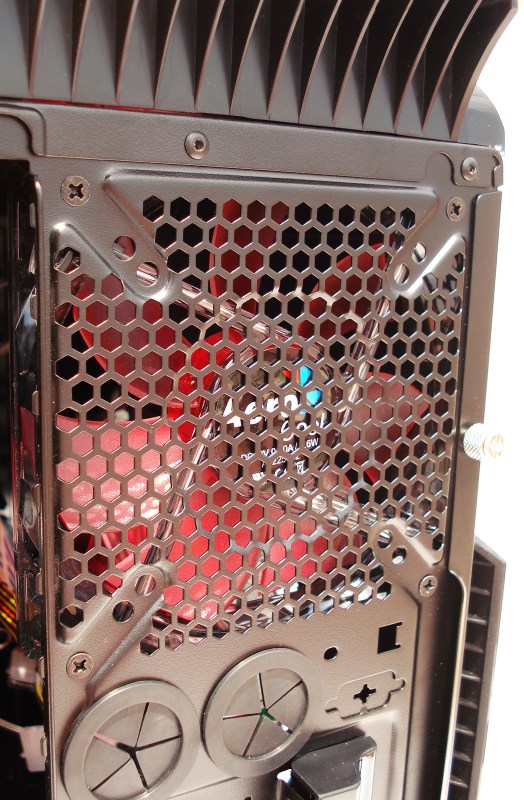 La ventana del lateral es una de las cosas que hacen destacar la caja del resto. Su diseño agresivo, y algo abultado por el lateral, hagan que parezca que tengamos un equipo excelente en su interior cuando podríamos no tenerlo. Sin duda el aspecto es su mejor arma. Posteriormente veremos detalladamente el gran ventilador que encierra.