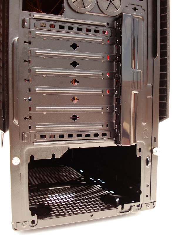AEROCOOL VX-9 PRO LE. Detalle Zonas Slots PCI y Fuente de Alimentación