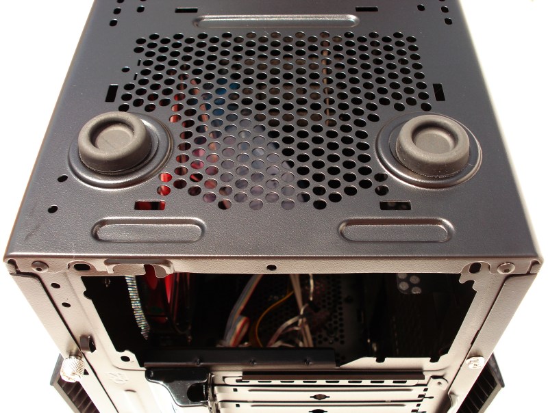 Esta es la otra parte donde se puede instalar opcionalmente el ventilador de 12 o incluso de 14 cm. Si instalamos una fuente de alimentación de grandes dimensiones (profundidad), es probable que no podamos encajar este ventilador. No obstante, es una opción que refuerza la refrigeración por aire global de la caja.