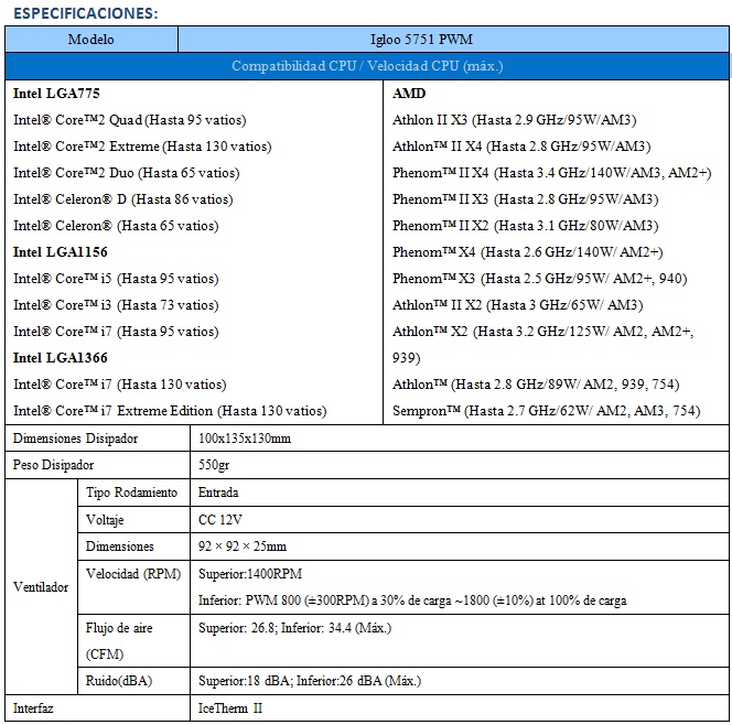 GlacialTech anuncia el lanzamiento del cooler para CPU multiplataforma, IGLOO 5751. Su particular diseño incorpora una especial combinación de cuatro tubos de calor fabricados en cobre que dispersan el calor de la CPU directamente a las aspas. Esta versión PWM tiene un ventilador axial que reduce la temperatura eficientemente, según lo necesite. El disipador, en su totalidad, mantiene un perfil y peso relativamente bajos para garantizar la seguridad y ligereza suficientes para no representar un peligro para el equipo.
