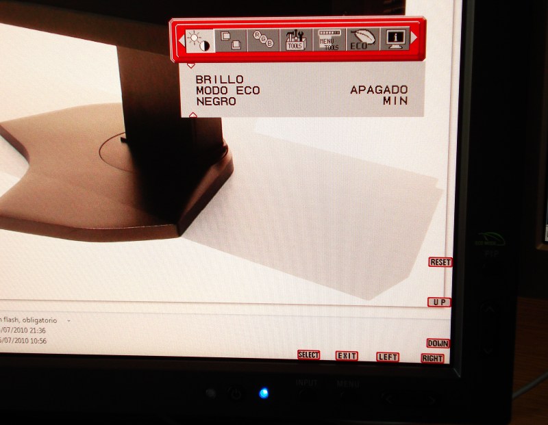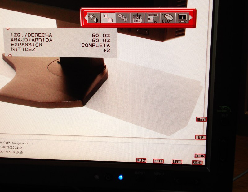 Lo mejor sin duda de todo el monitor es precisamente este Menú OSD y su modo Avanzado, que hacen que el panel equipado de este monitor cobre vida. El brazo no es suficiente para impedir el movimiento por el empuje que ejerce nuestro dedo al pulsar cualquier botón del menú, siendo lo más correcto sujetar el monitor por detrás con la mano derecha y pulsando con el dedo pulgar. Todos los botones son accesibles, fáciles de identificar y cómodos de pulsar al tacto. En este apartado creemos que está idóneamente diseñado.