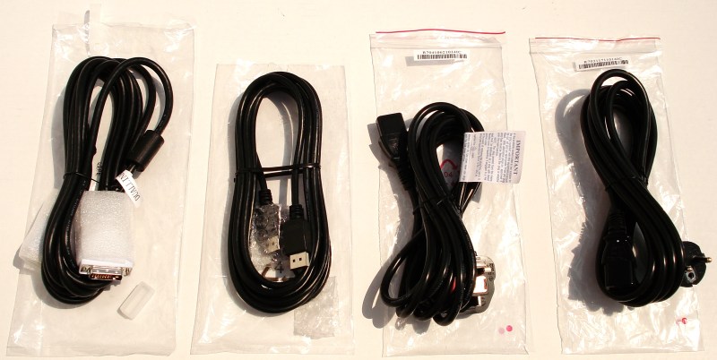 Los componentes que acompañan a este monitor, son lo mínimo que se puede pedir para un producto de estas características. A parte del monitor, tenemos 6 bolsas separadas, cada una destinada para recoger algún componente: