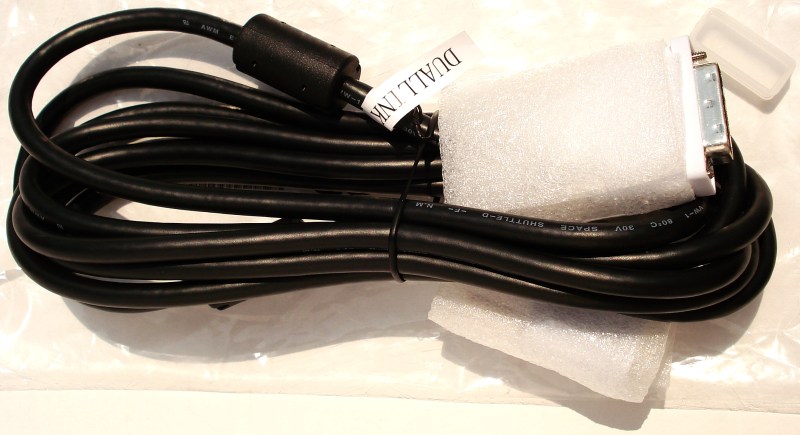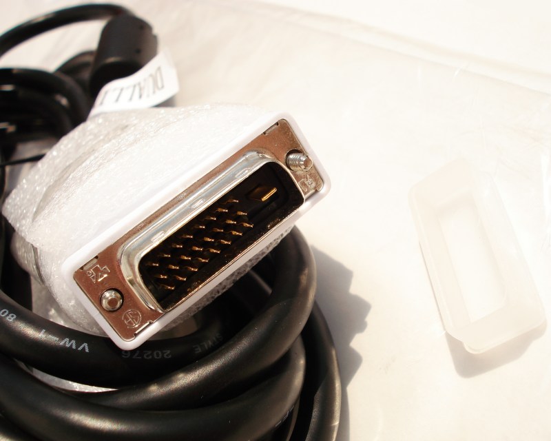 Este cable viene totalmente protegido en sus conexiones. Su longitud es de aproximadamente 3.00m, algo destacable. Se nota que es un cable de calidad, fuerte y robusto. Lástima que no nos hayan suministrado otra unidad de éstas, ya que la pantalla tiene 2 entradas DVI-D en su panel posterior, tal como veremos más adelante.