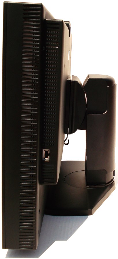 El lateral derecho es idéntico al izquierdo, salvo que esta vez dispone de un conector USB2.0. Esto nos facilita las cosas, ya que disponiendo de este conector, podemos prescindir en mayor medida de nuestra torre. Ahora vemos el monitor contraído. Veámoslo elevado.
