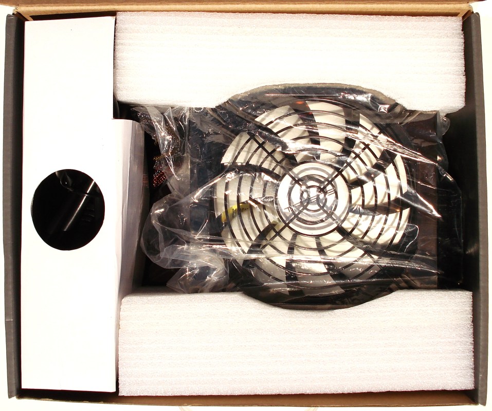 Así es cómo nos ha venido este producto. Arriba del todo venía con la guía de instalación y una goma anti-vibraciones que luego veremos. En la izquierda, un cartón doblado en forma de U invertida, nos separa los cables de la propia fuente. Desplegamos a continuación todo el contenido, a ver qué tenemos…