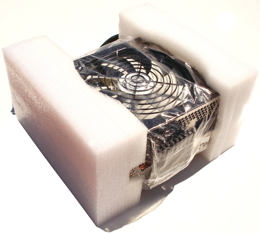La fuente viene bordeada por dos esponjas duras, siendo lo más común empleado por todos los fabricantes, el sistema de protección a modo de sándwith. TACENS ha optado por dos esponjas muy gruesas y de buen tamaño, garantizando así que la fuente no tenga ningún desperfecto, antes de su uso inicial, ni en su transporte futuro.