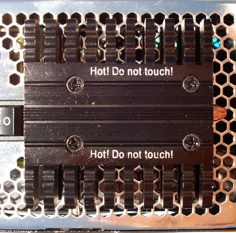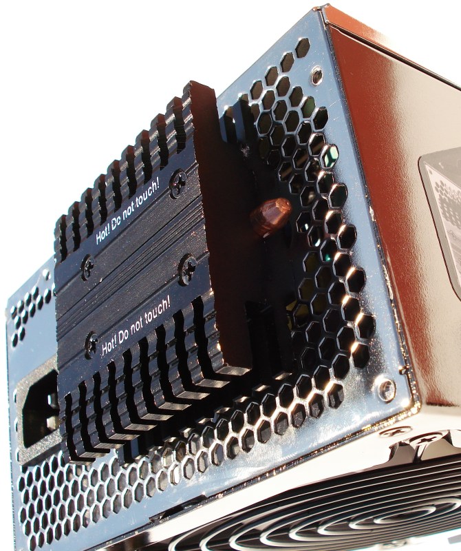 Nosotros, como «somos muy precavidos», hemos tocado este disipador con la yema de los dedos, después de 3 horas de funcionamiento. Y la cosa andaba calentita, hasta el punto que suponemos que alcanza sobradamente el doble de la temperatura ambiente, rondando por encima de los 60ºC cuando la fuente realmente trabaja a plena carga (<50%). Aún así, no nos parece una temperatura muy elevada, estando el ventilador totalmente quieto y en un entorno de verano (28-29ºC).