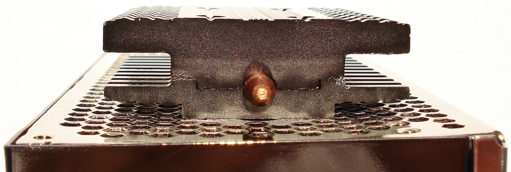 Con tan solo un heatpipe TACENS se ha inventado esta disipación. Tal como veremos más adelante, este tubo de cobre recorre este disipador hasta el interior de la fuente, acabando en contacto junto a otro disipador de reparto interno.