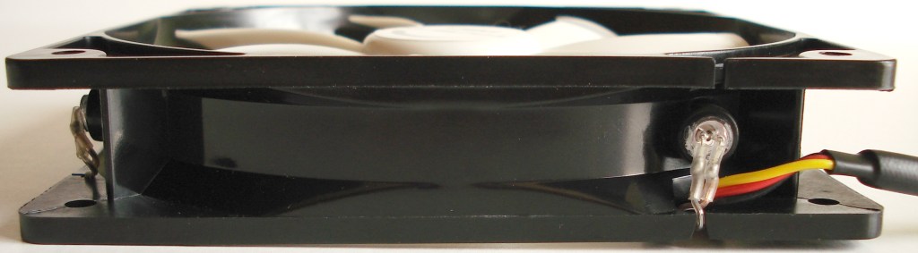 El perfil del ventilador es algo que apenas nos dice nada. Eso si, ambas caras, la frontal y posterior, vistas de perfil son total mente lisas. Su grosor es de 2.5cm y en cada una de estas 2 caras, posee 4 perforaciones en cada esquina. En total son 8 perforaciones, para poder montarse el ventilador orientando el aire hacia fuera o hacia dentro de nuestra torre, según nos convenga.