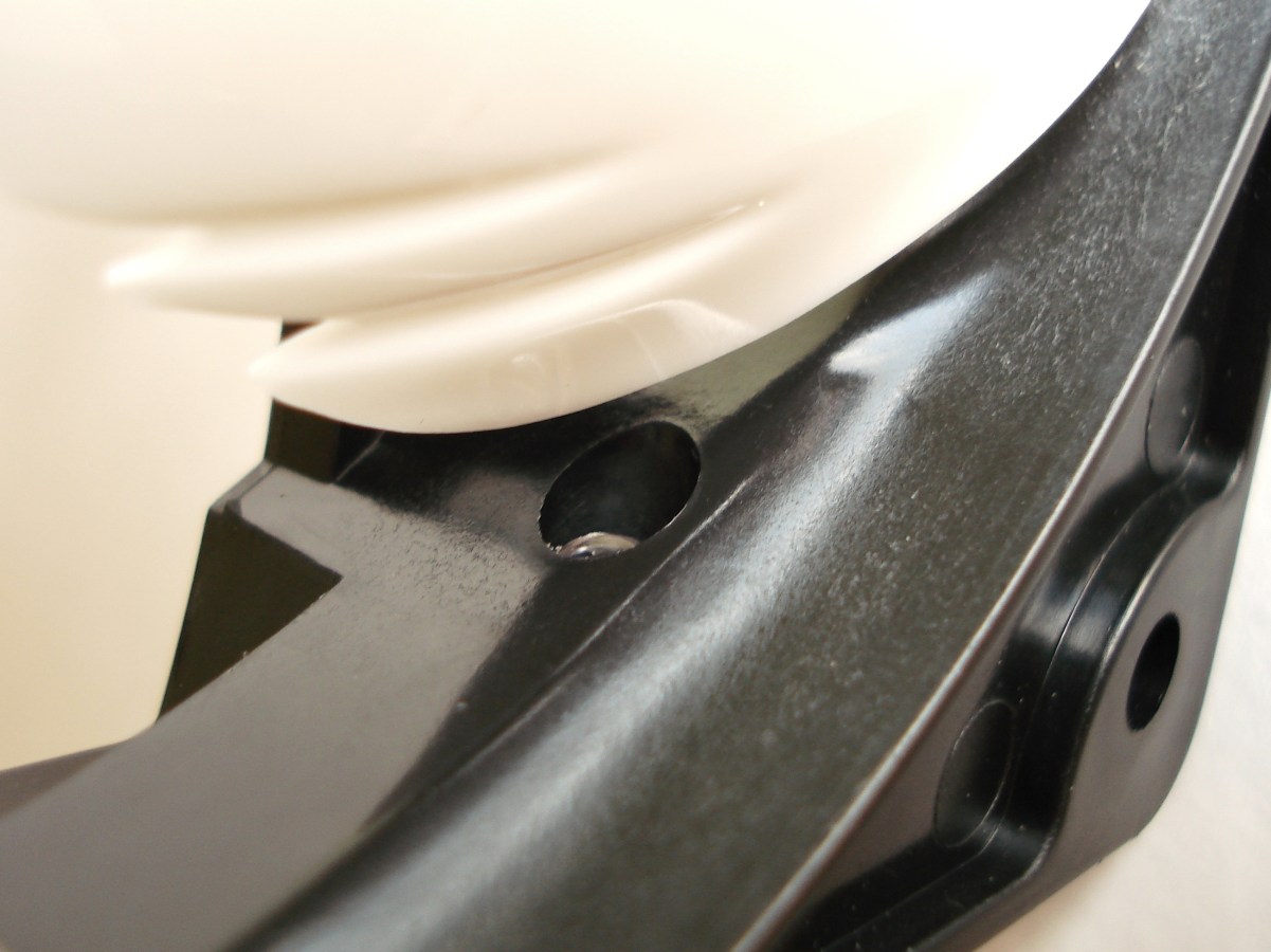 Aquí podemos apreciar el acabado del orificio de uno de los leds, que actúa como foco del mismo. La luz sale orientada como si de una linterna se tratase, dando un aspecto más vivo del ventilador en funcionamiento. Los leds van acorde a la velocidad de rotación, disminuyendo de intensidad de luz si su velocidad también lo hace. Luego veremos a los leds en acción.