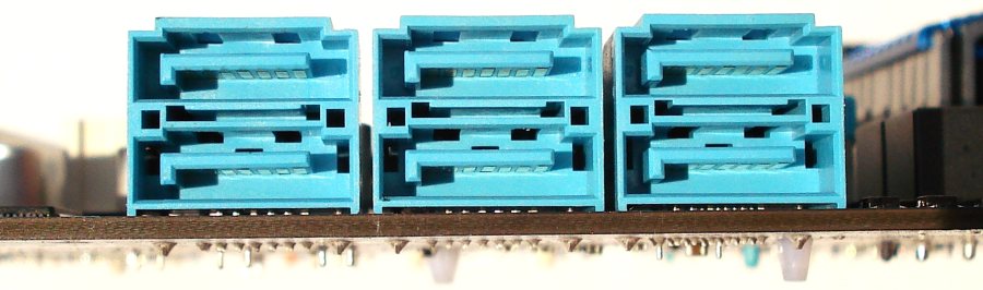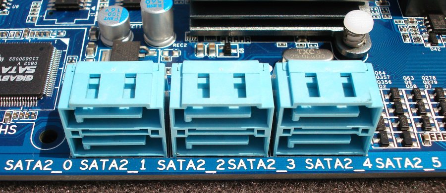 Estos son los 6 conectores SATAII, que podremos configurar independientemente o en RAID, según las especificaciones del Southbridge AMD SB750, ya descritas anteriormente.
