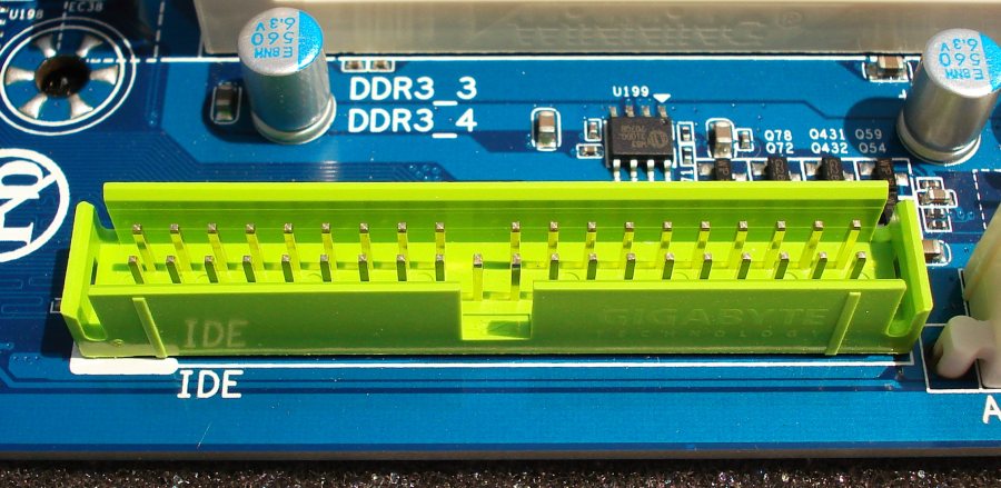 No puede faltar un conector IDE, que poco a poco irá desapareciendo de las placas base, dando paso a únicamente los conectores SATA y USB.