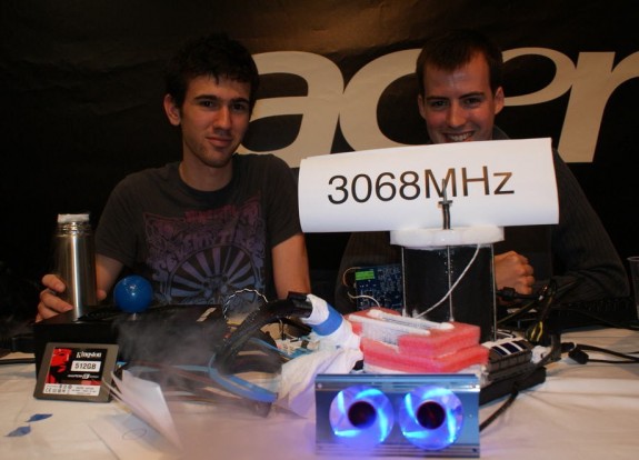 En la feria GamesCom 2010, celebrada la semana pasada, los overclockers Benjamin ‘Benji Tshi’ Bioux y Jean-Baptiste ‘marmott’ Gerard, consiguieron alzar la frecuencia de la memoria Kingston HyperX KHX2333C9D3T1K3, de 2333MHz, a nada menos que 3068MHz, haciendo así un récord mundial.