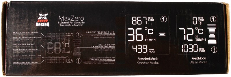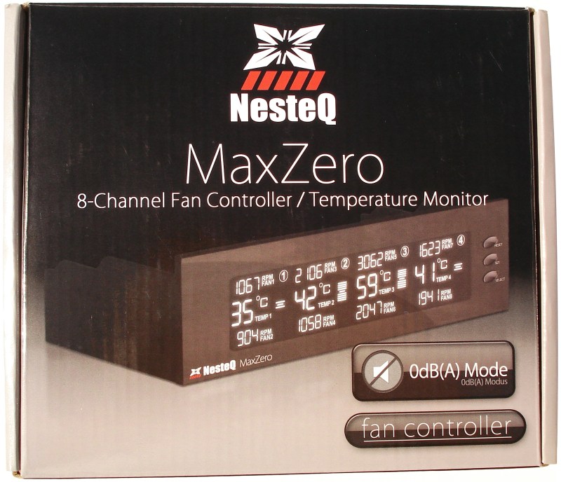 Combinando dos colores, negro y gris, NESTEQ nos muestra su panel MAXZERO. Se destacan 3 cosas; el número de canales que soporta, el monitoreo de temperaturas y su modo 0dB(A) para apagar los ventiladores, para conseguir un silencio total de ellos cuando no sea necesaria tanta refrigeración.