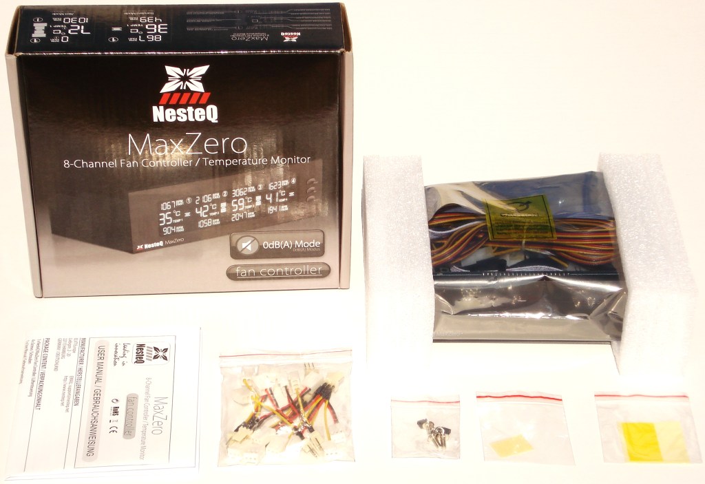 Todos los cables alargadores para los ventiladores vienen adjuntos dentro de la bolsa, acompañando al panel. El manual se despliega a dos hojas, y como no, traducido en inglés y alemán.