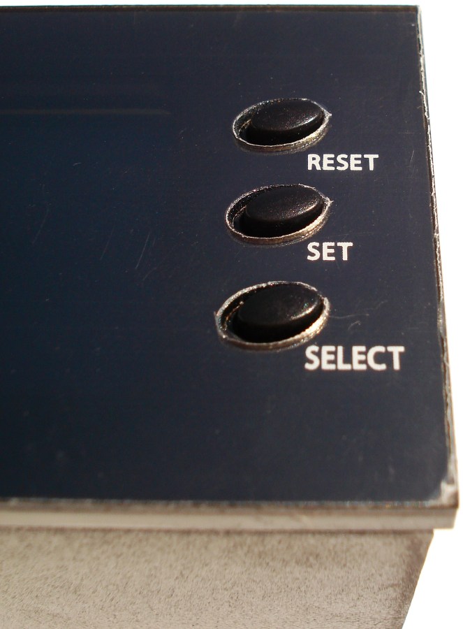 Si comparamos el dibujo del panel de la vista superior de la caja de cartón con el propio panel en funcionamiento nos llevaremos una ligera sorpresa. En la caja de cartón aparecen los número blancos con el fondo negro, dando una elegancia perfecta. En cambio, viendo el panel en funcionamiento tenemos una visión distinta, con el fondo azul-violeta y los caracteres blancos-azulados. Dependiendo del ángulo de visión el azul-violeta que nos ofrece pierde intensidad acercándose al blanco. Esto es algo que no nos acaba de gustar, y no porque el panel tenga el fondo azul, que queda bonito, sino porque en la caja aparece con el fondo negro.