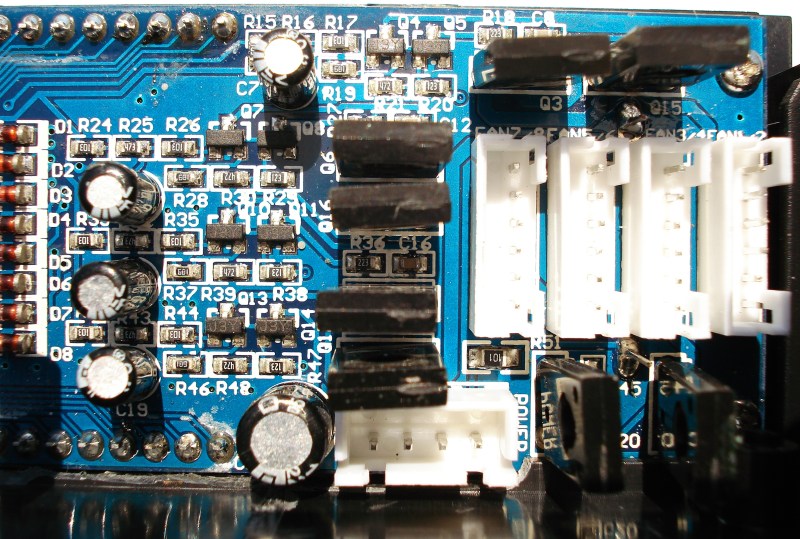 - Posee un pequeño altavoz de alarma en la esquina superior izquierda, junto al par de pines que hacen de puente para habilitarlo. El FANMAX no posee tal pieza.