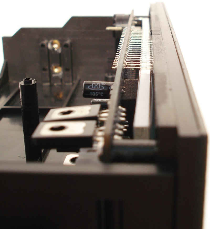 - Los 4 conectores de salida están juntos, en paralelo y en un lateral, extraíbles, no soldados. Los del FANMAX están en la superficie central superior.