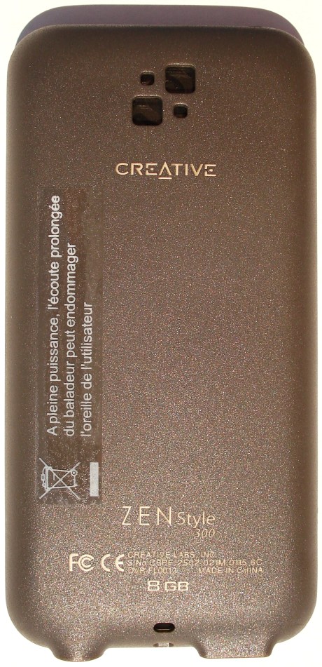 CREATIVE ZEN STYLE 300. Vista Posterior. Altavoz y Orificio de Enganche