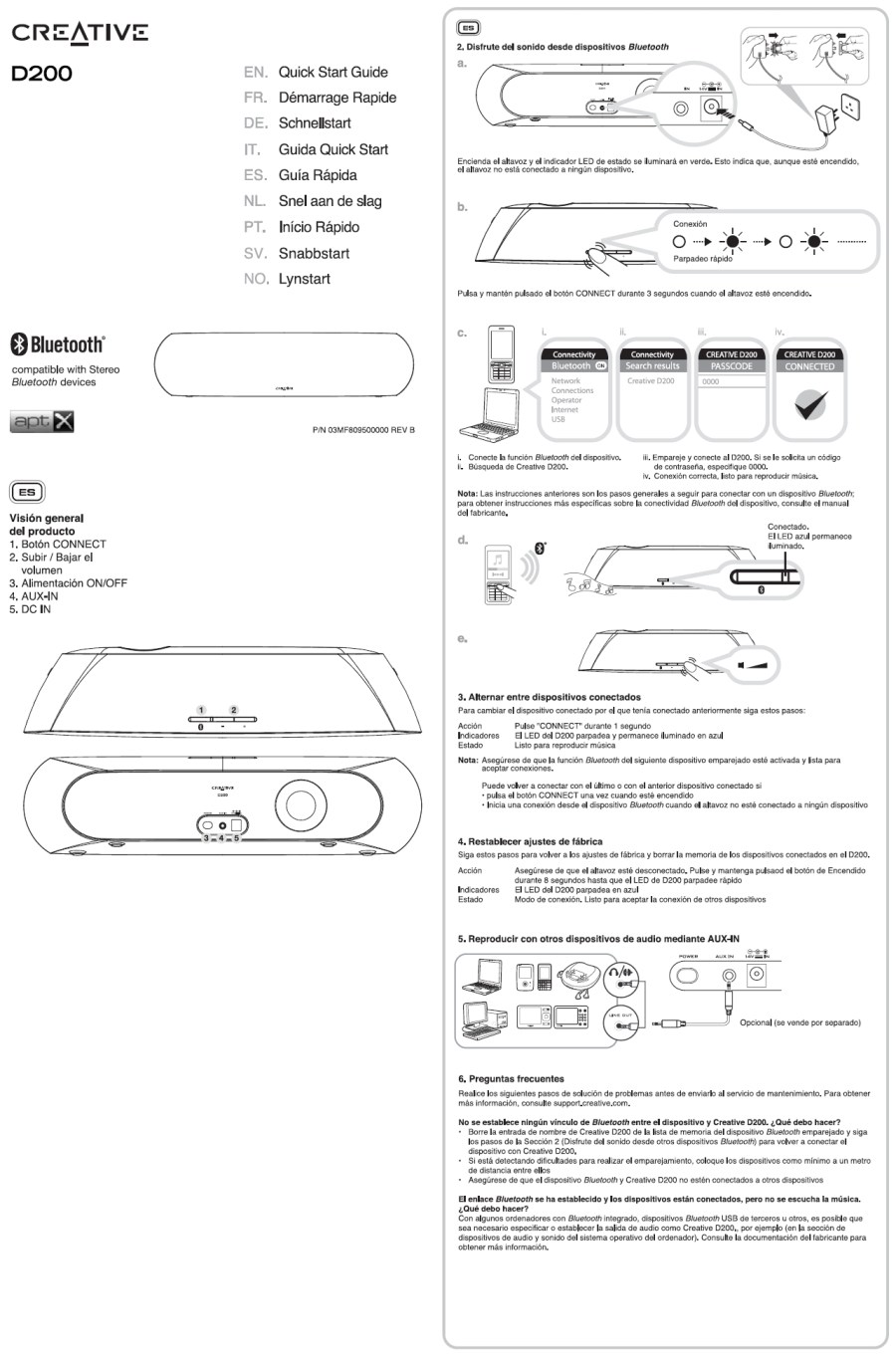 CREATIVE D200. Manual Retocado (NO original) Solo en Español