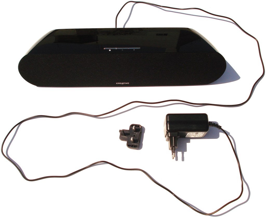 Para finalizar el apartado de componentes del producto, no podía faltar la propia caja acústica. Como hemos dicho antes, tenemos entre manos una alargada caja acústica activa (con amplificador de audio digital), estéreo (doble canal de audio), de una sola vía por canal (un solo potente altavoz por canal), con tecnología inalámbrica Bluetooth.
