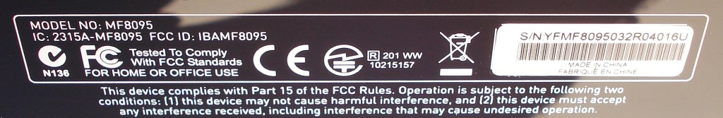 Otro detalle que implica calidad es el hecho de que el fabricante no emplee una pegatina para describir la información del producto, algo que es bastante más barato. Solo emplean pegatina en el código de barras, algo obvio. Si ampliáis la fotografía podéis ver al detalle el modelo, normativa que cumple el producto y otras que debemos tener presente. A parte tenemos una indicación de cumplimiento del FCC (Comisión Federal de Comunicaciones). Como veis, este tipo de productos están muy bien regulados.