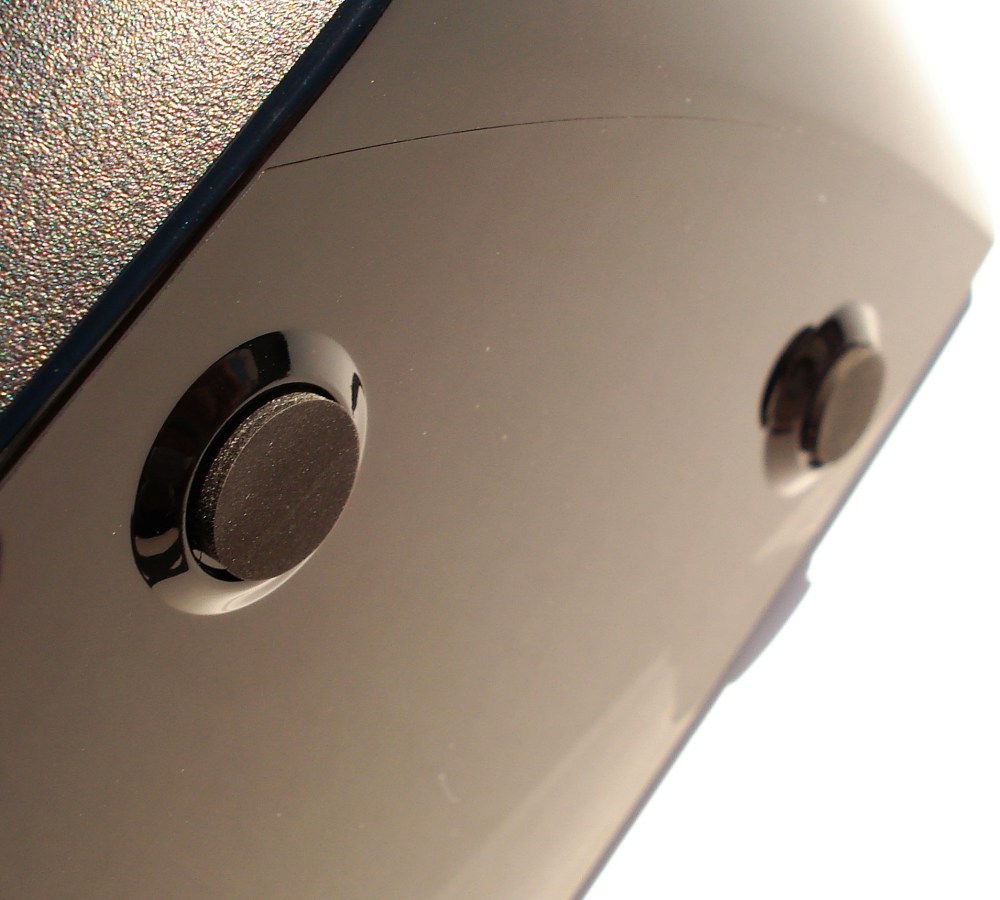 Y hemos dejado a parte el conector de encendido y apagado por un motivo. Creemos que hubiera sido más acertado colocar este botón aislado en el panel de control superior, junto con los otros 3 botones. Quizá el hecho de tener este botón detrás sea más incómodo de pulsar, aunque la caja acústica es relativamente pequeña, quizá optemos por colocarla en un mueble ajustada a este y resulte de difícil acceso. De todas formas en la parte trasera está más protegido y será más difícil de desconectar la unidad por accidente.