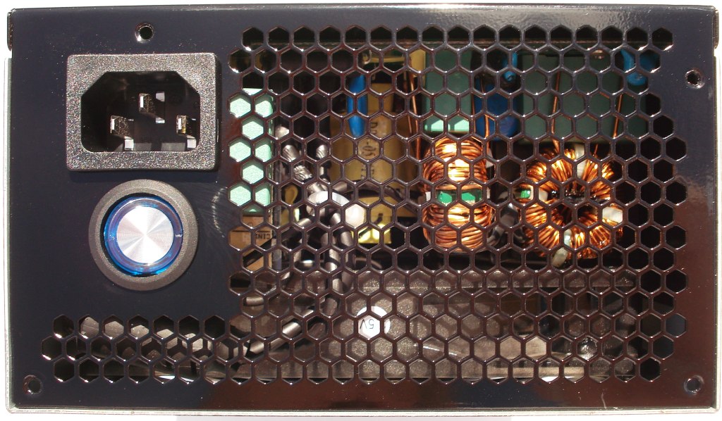 En la parte trasera hay algo que nos ha llamado la atención. A parte de la rejilla de «panel de abeja» para dejar pasar el aire hacia fuera de la fuente, y del propio conector del cable de alimentación de corriente, disponemos esta vez de un interruptor redondo de 2 posiciones con led indicador de encendido. Esto es todo un acierto y se aleja de la monotonía que nos tiene acostumbrados la mayoría de los fabricantes.