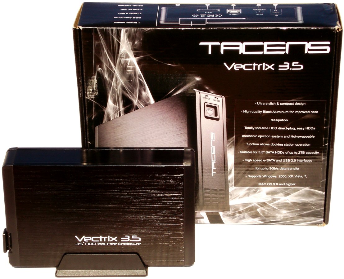 El VECTRIX 3.5 posee una base que se fija en un lateral de la carcasa para colocarla de forma firme y vertical. Esto le da un toque de elegancia al conjunto. Así que tendremos dos posibles colocaciones, en horizontal y en vertical, aumentando así en versatilidad. Recordamos que no hay ningún problema en colocar un disco duro abatido 90º en vertical, su funcionamiento será igual de correcto, ya que sus mecanismos internos están preparados para ello.