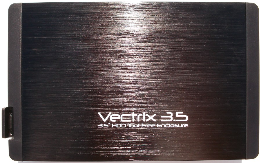 Podemos identificar fácilmente cómo el fabricante juega con dos materiales principales. En el frontal y en la parte trasera se termina la carcasa con material de plástico ABS, mientras que la propia carcasa está hecha con planchas de aluminio con acabado cepillado en negro brillante. Su aspecto es excelente. En esta cara podemos ver el nombre del modelo VECTRIX 3.5.