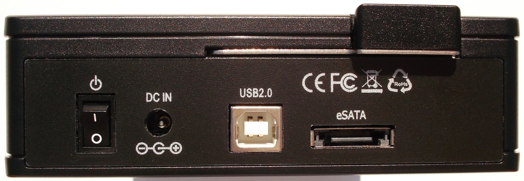 En la parte trasera tendremos el panel de conexiones que detallaremos más adelante. Posee una palanca para expulsar el disco duro de su interior con facilidad. En su frontal dispone de una tapa abatible 90º respecto de su eje inferior, colocada en vertical que también detallaremos en las páginas siguientes.