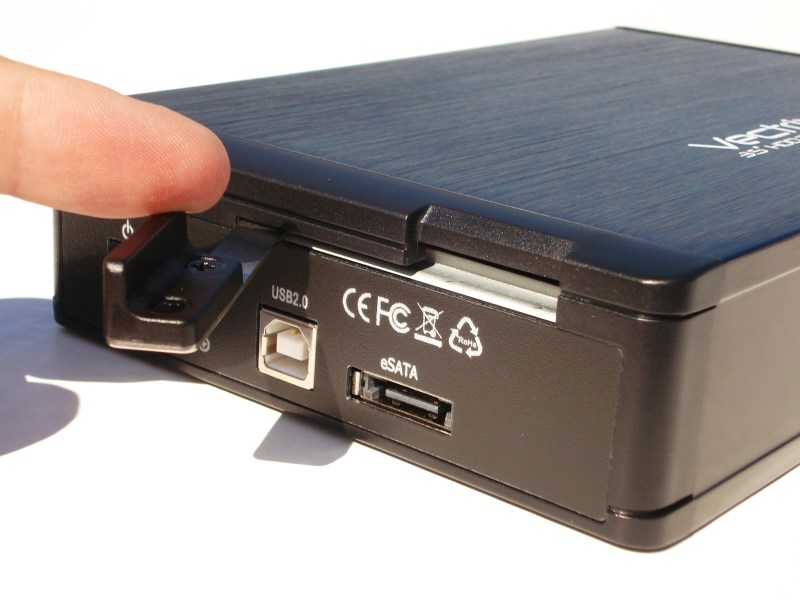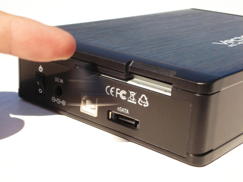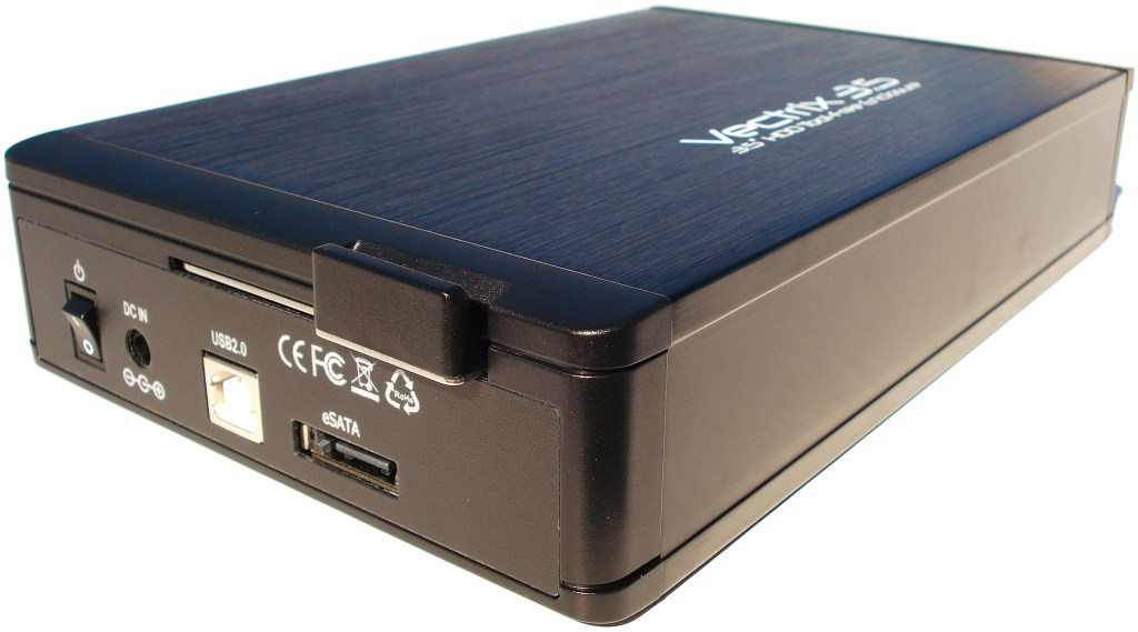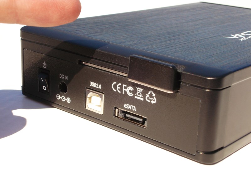 Sin embargo, en este caso es necesario emplear un transformador de corriente adicional (el adjunto en el producto), externo a la carcasa para alimentar al disco duro de 3.5″ que le insertemos. Esto puede llegar a ser un inconveniente, a causa de la falta de ideas por parte de los ingenieros de placas base, que no son capaces de diseñar una salida USB o eSATA para transferencia de datos adjunto con la alimentación a 12V. Con diseñar un molex de 4 pines cerca de los conectores USB y eSATA, para conectar directamente una toma de la fuente de alimentación de nuestro PC, o simplemente cambiar la circuitería, sería suficiente. Así se ahorraría tener que emplear otro transformador de corriente alterna, al menos en el entorno para computación.
