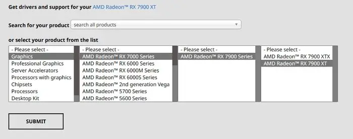 El siguiente paso será descargar los controladores de GPUs de AMD desde la web de AMD o desde este enlace. Únicamente deberás elegir el controlador que corresponda y descargarlo según tu versión de Windows.
