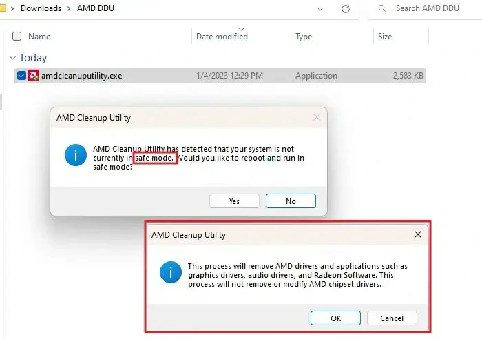 Descarga AMD Cleanup Utility desde la web oficial de AMD o desde este enlace y elimina todos los controladores. Ten en cuenta que esta herramienta sólo funciona en el modo seguro de Windows, así que inicia tu PC en él.