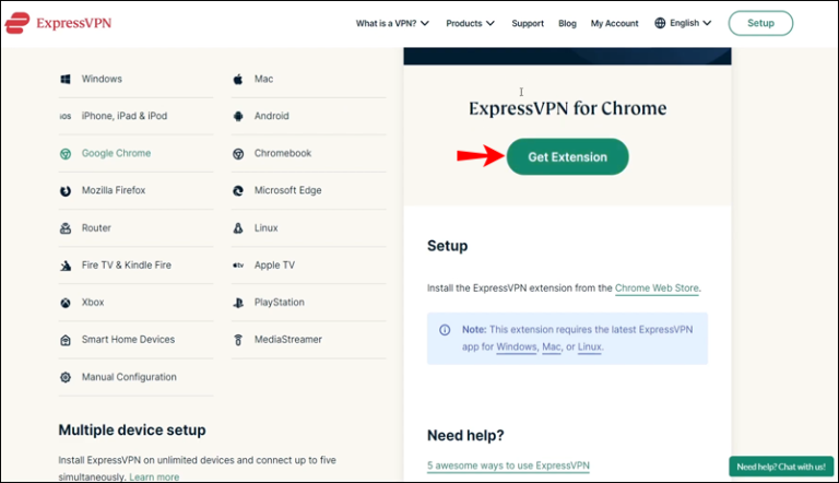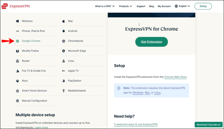 A continuación, nos dirigimos a www.expressvpn.com/setup, iniciamos sesión con nuestra cuenta y seleccionamos Google Chrome.