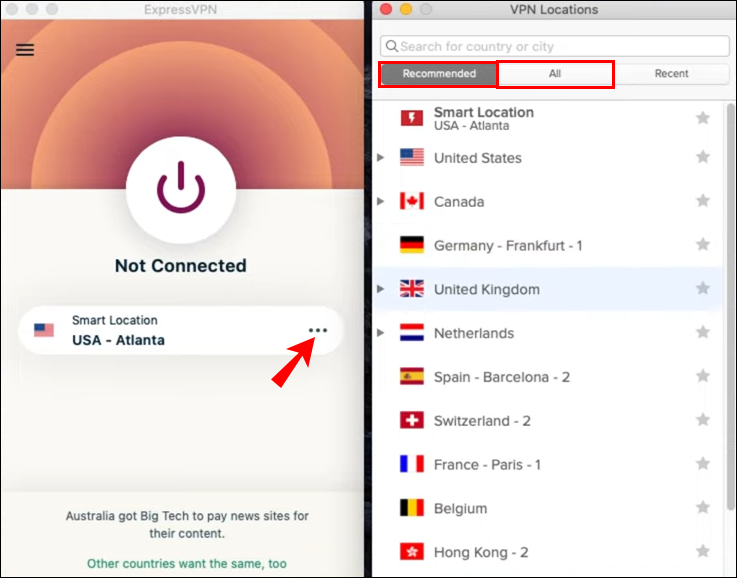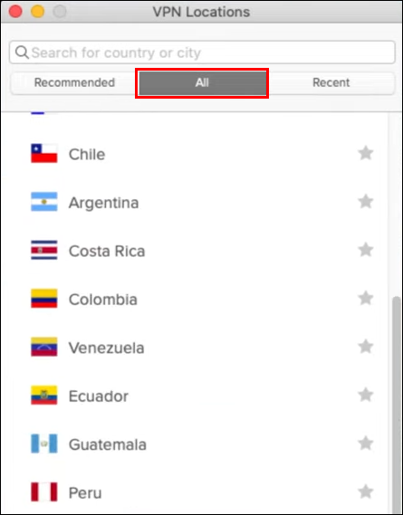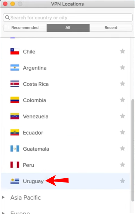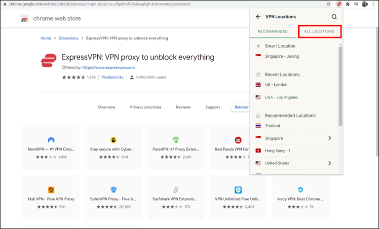 Se abre una pequeña ventana en donde veremos dos pestañas: Recomendado y Todas las ubicaciones. Aquí podemos ir a Todas las ubicaciones y elegir la región que más nos interese.