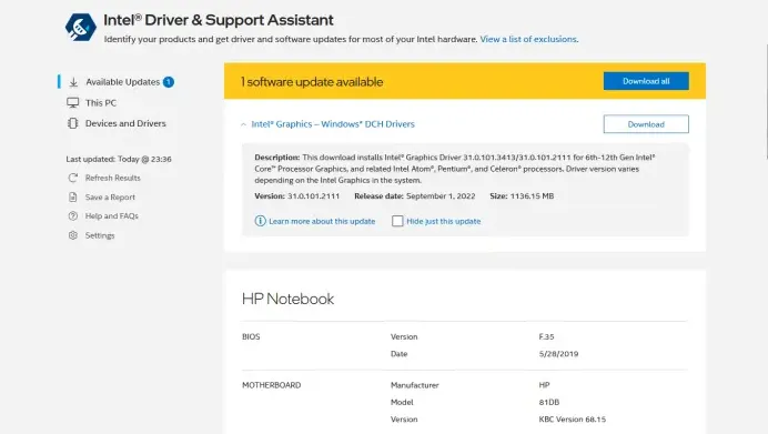Entonces, podemos usar las herramientas dedicadas a actualizar los controladores gráficos de manera automática. Por ejemplo, Intel Driver & Support Assitant nos puede ayudar a efectuar la actualización de manera automatizada sin que tengamos que pensar mucho en esto.