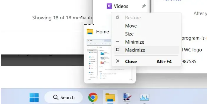 En caso de que podamos ver el programa desde la barra de tareas, pero no en la pantalla, intentaremos maximizar el programa desde la barra de tareas. También podemos usar la opción Mover si el problema está resuelto.