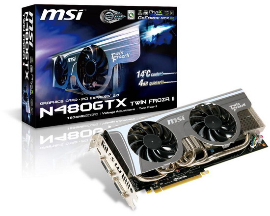 La compañía MSI ha presentado recientemente dos nuevas versiones de tarjetas gráficas Nvidia, la N460GTX Hawk Talon Attack, y la N480GTX Twin Frozr II, ambas con una refrigeración especial de MSI, además de las frecuencias aumentadas.
