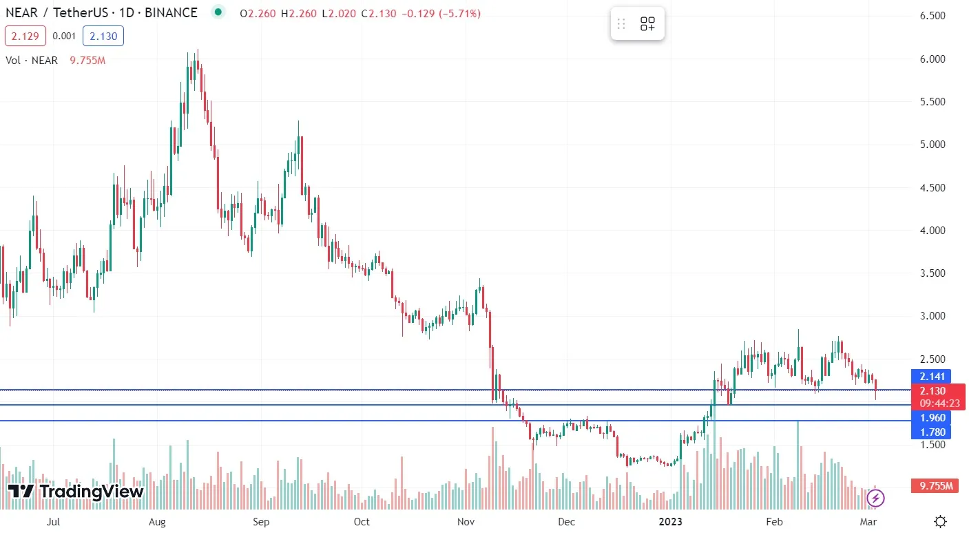 Para aquellos interesados en la evolución del precio de NEAR, es importante vigilar los siguientes niveles de soporte: $1,96 y $1,78. Si el precio cae por debajo de estos niveles, podría haber una corrección más significativa. No obstante, aquellos que creen en el potencial de NEAR y su sistema operativo Blockchain Operating System (BOS) podrían ver esta corrección como una oportunidad para comprar a un precio más bajo y obtener beneficios a largo plazo.
