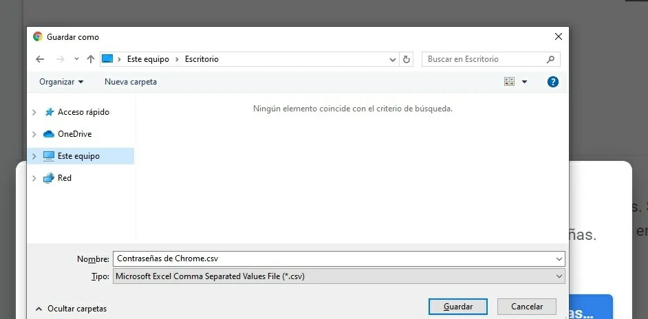 Pulsa allí si quieres exportar tus contraseñas de Chrome y guardarlas en la computadora para más tarde. Seguramente tendrás que aceptar la advertencia de que cualquiera podrá ver allí todas tus contraseñas. Recuerda, asimismo, que los archivos con las contraseñas se guardan en formato CSV en tu PC.