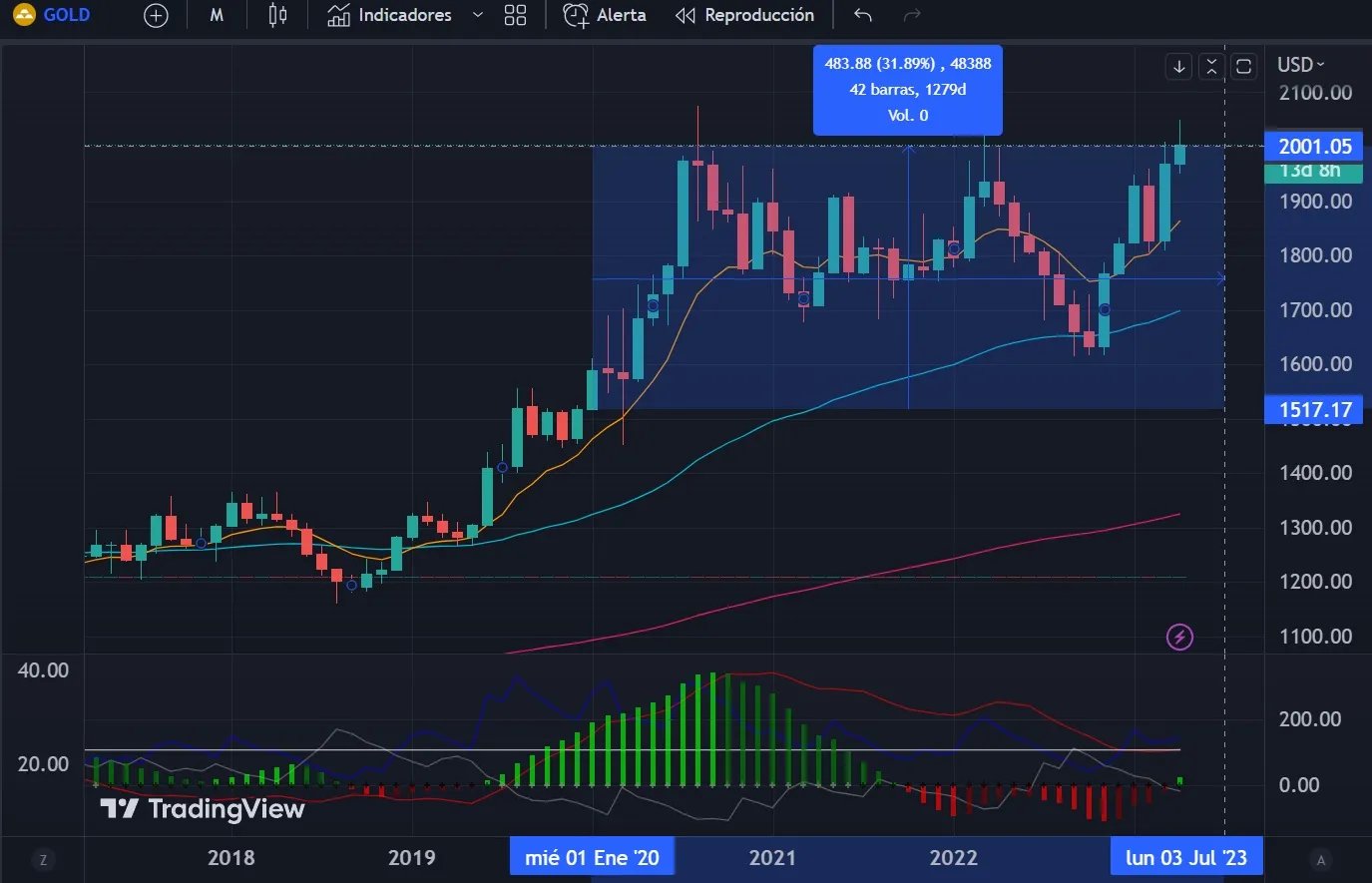 En cuanto al índice TOTAL2, que incluye el mercado de las altcoins, se ha observado un aumento del 47% desde enero de 2023, una disminución del 26% desde enero de 2022 y un aumento del 1100% desde enero de 2020. Esto significa que las criptomonedas en general están teniendo un mejor rendimiento que el oro en términos de rentabilidad a largo plazo.