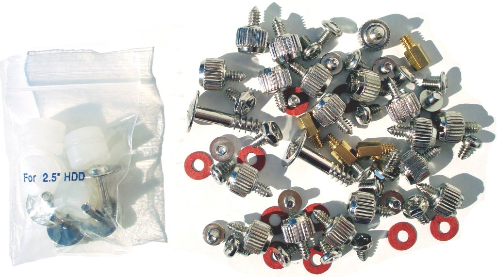 - Bolsa hermética con tornillos y gomas de montaje para HDD